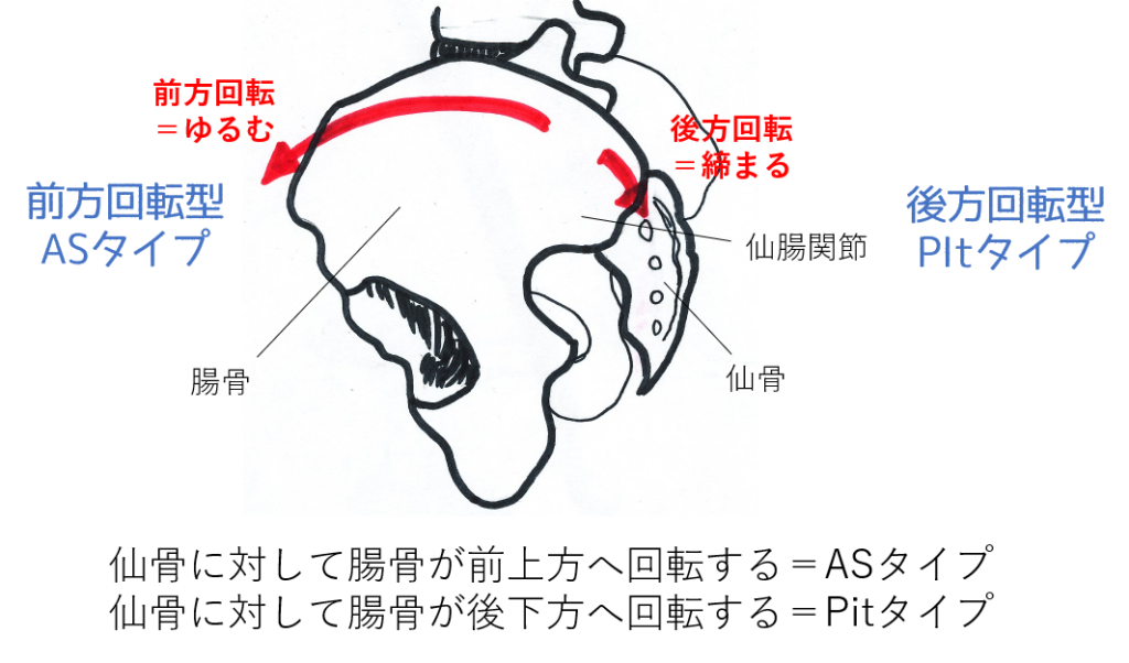 仙骨に対して腸骨が前上方へと回転。骨盤が緩んで支えられない状態であるため、【非荷重損傷】と呼ばれます。